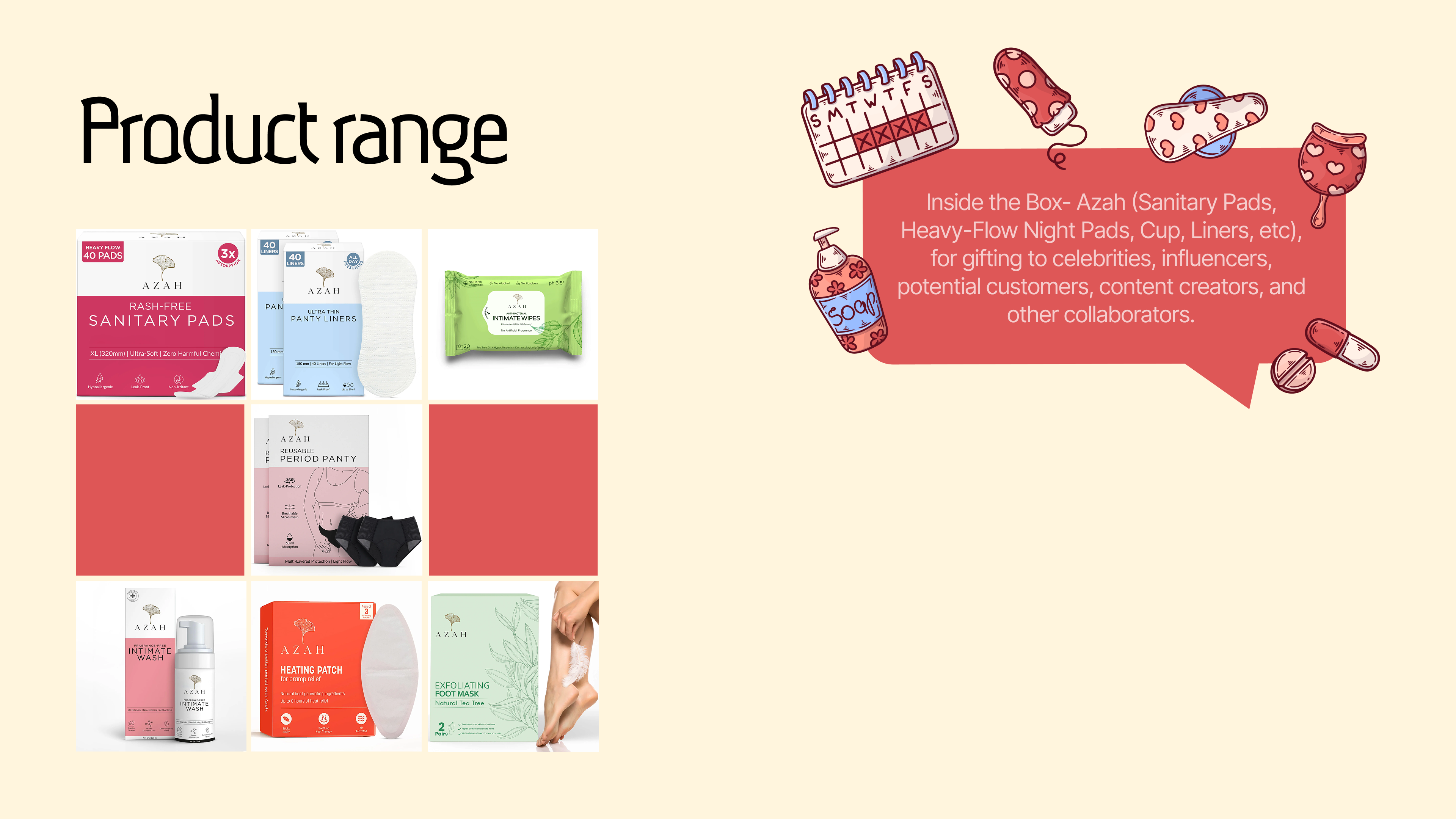 Packaging for gift box, period pads, and face razor blister pack